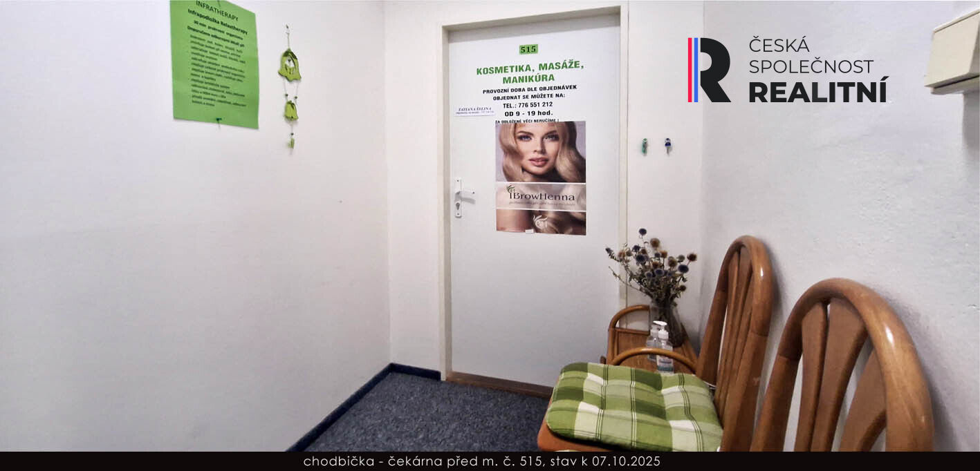 Před nabízenou místnosti je malá čekárna k bezplatnému využití pro klienty nájemce.
