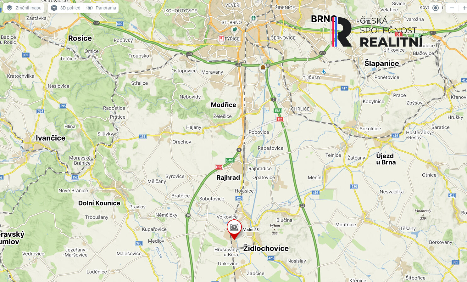 Skvělá dopravní dostupnost (dálnice D52, železniční trať)