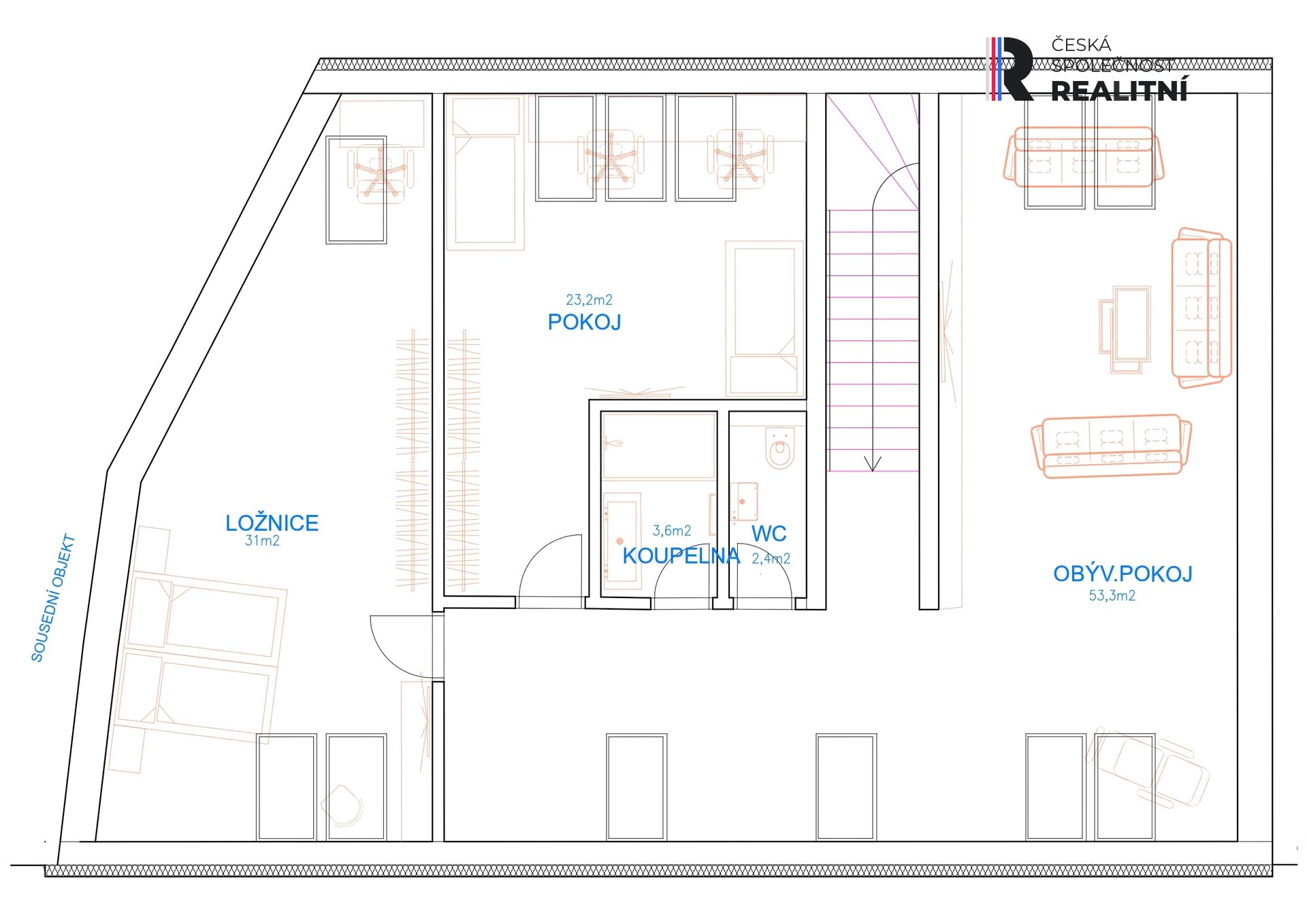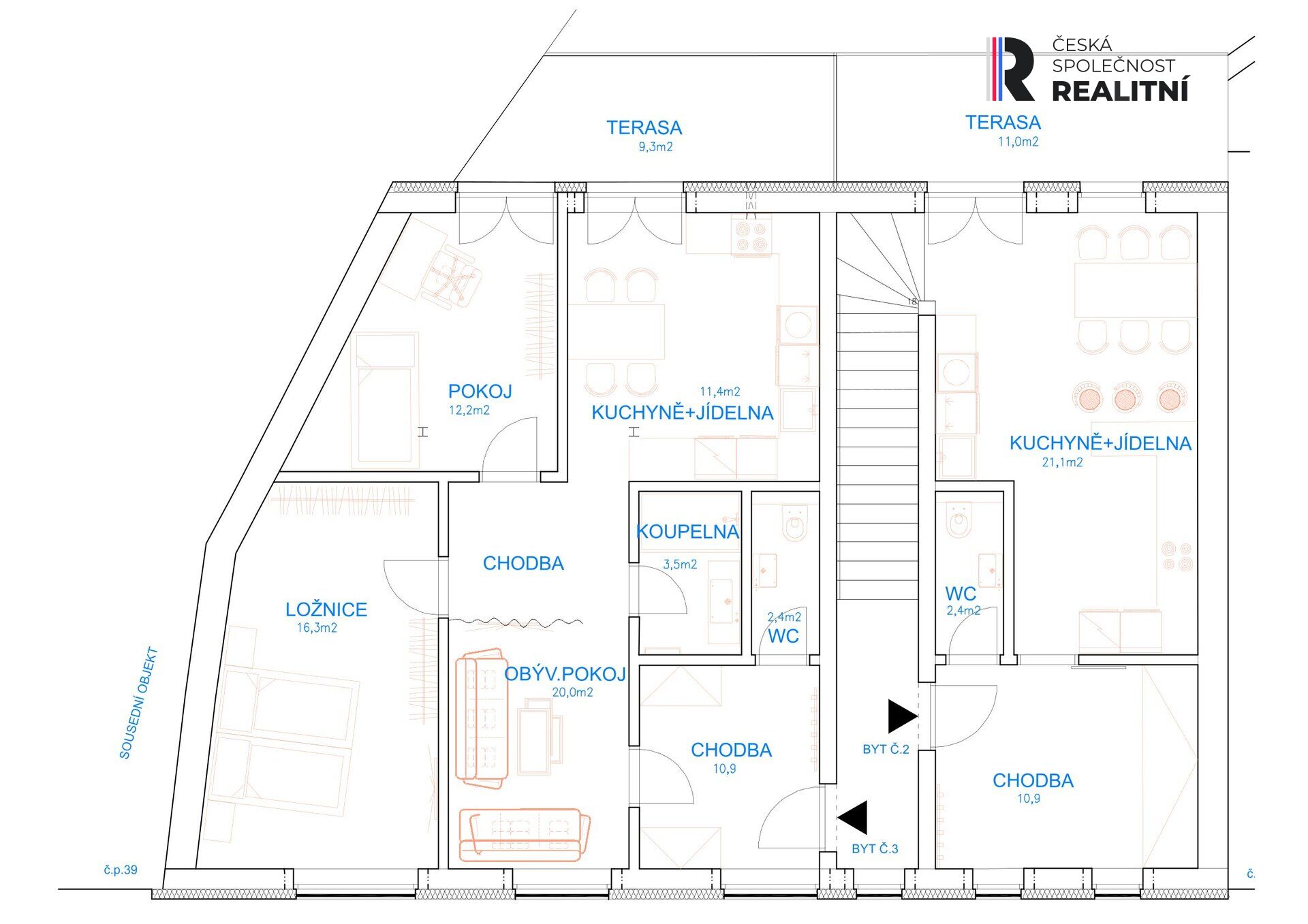 Mezonetový byt - projektově byt č. 2.
