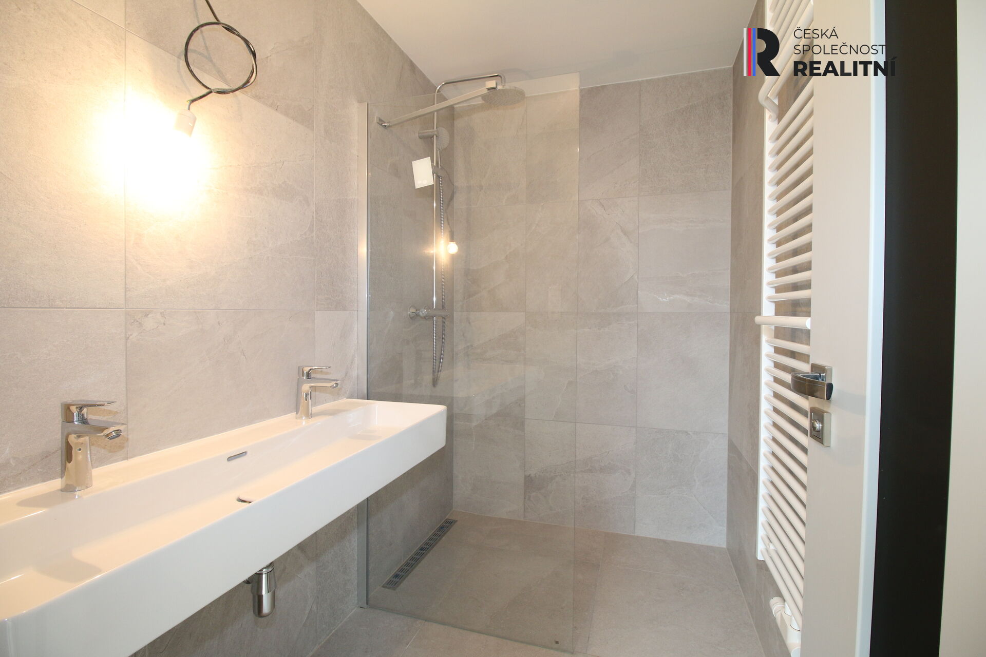 Obklady a dlažba - keramické (Ptáček), okna - kvalitní trojskla, dveře - kvalitní vstupní (Bajer) a interiérové (DKP), sanita - závěsné WC Geberit s přípravou na integrovaný bidet.