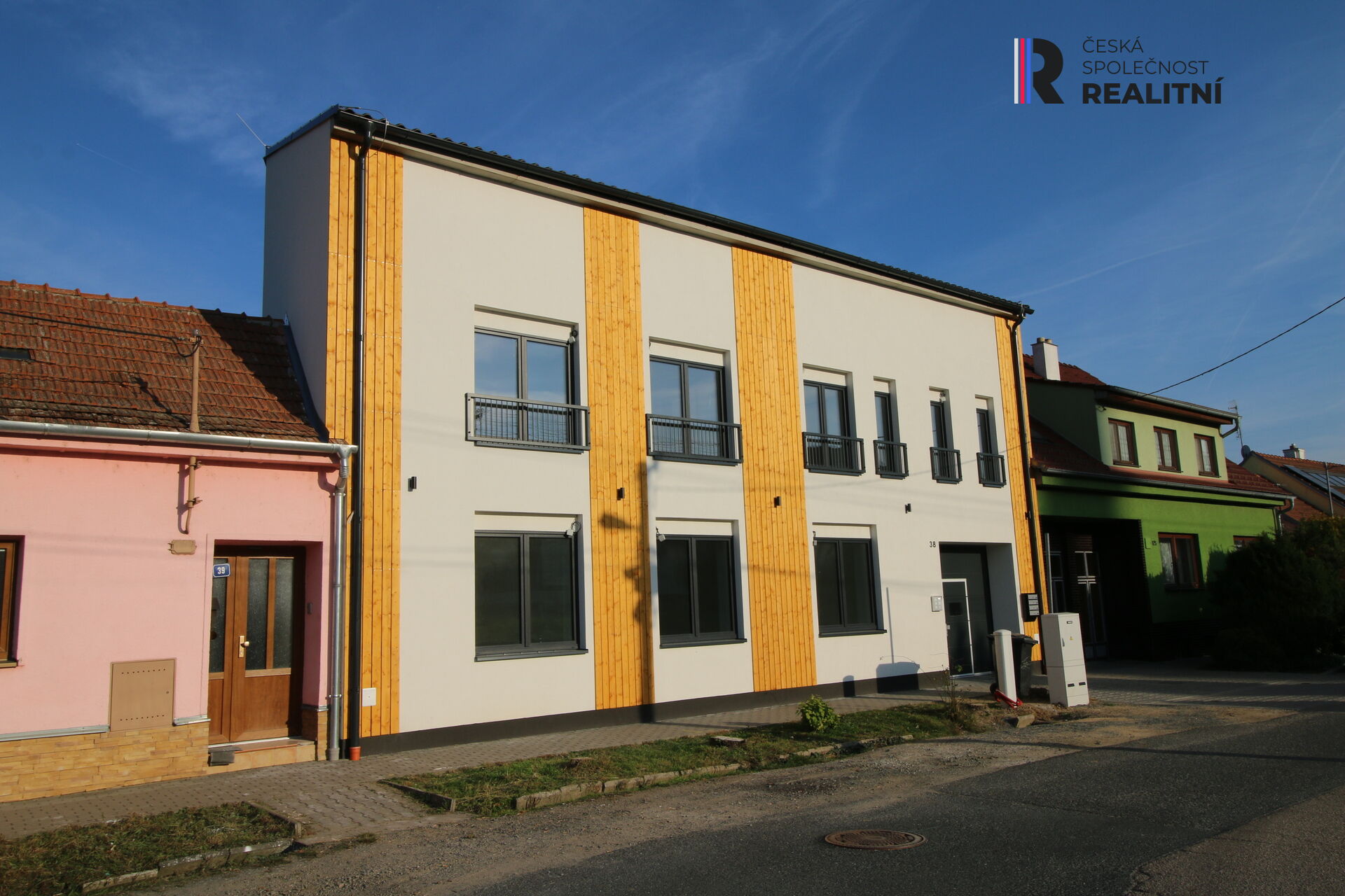 Novostavba budovy ( orientace východ-západ ) obsahuje celkem 3 samostatné bytové jednotky.