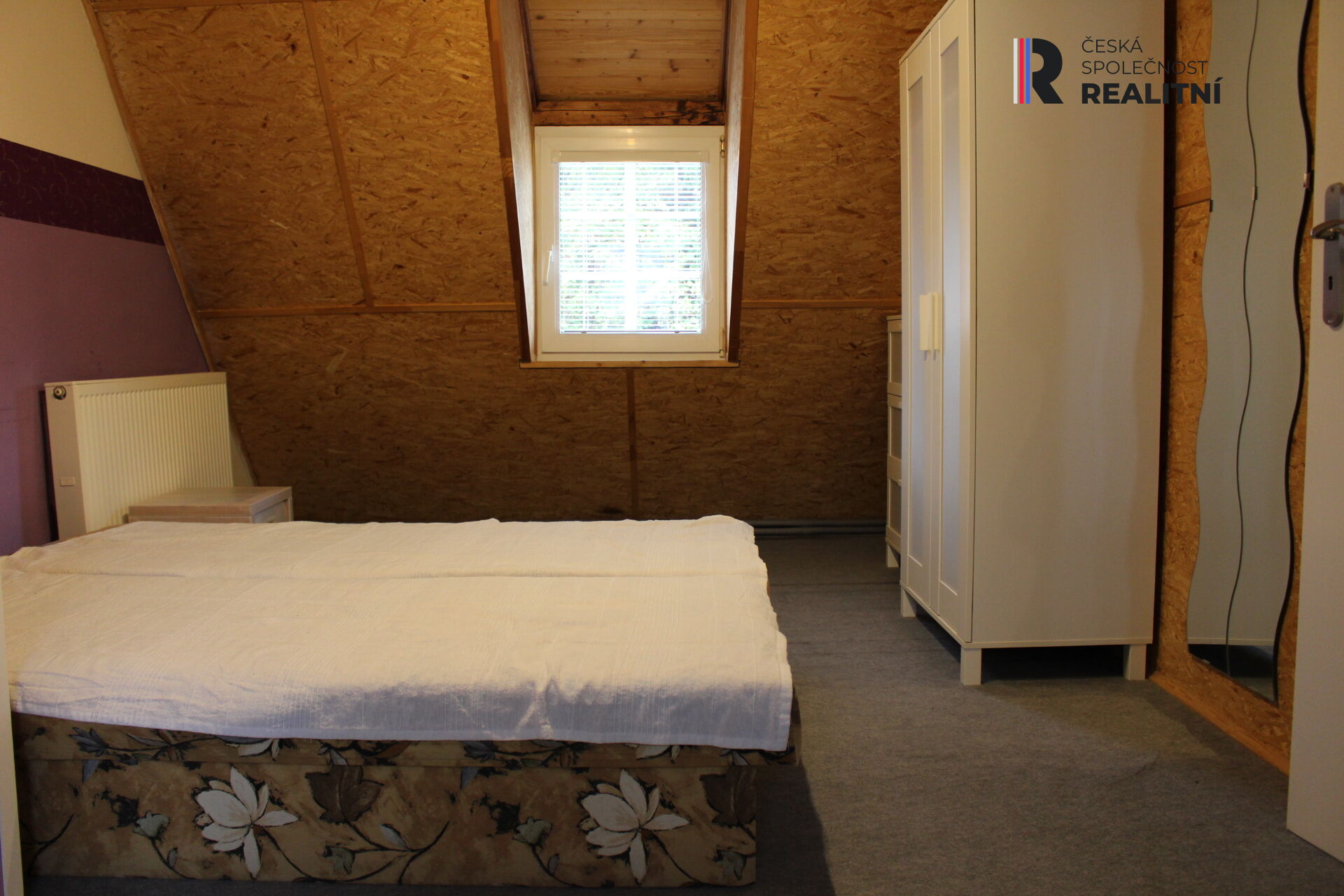 V 1. podkrovním patře se nacházejí dva pokoje (vybaveny radiátory) a jeden menší otevřený prostor.