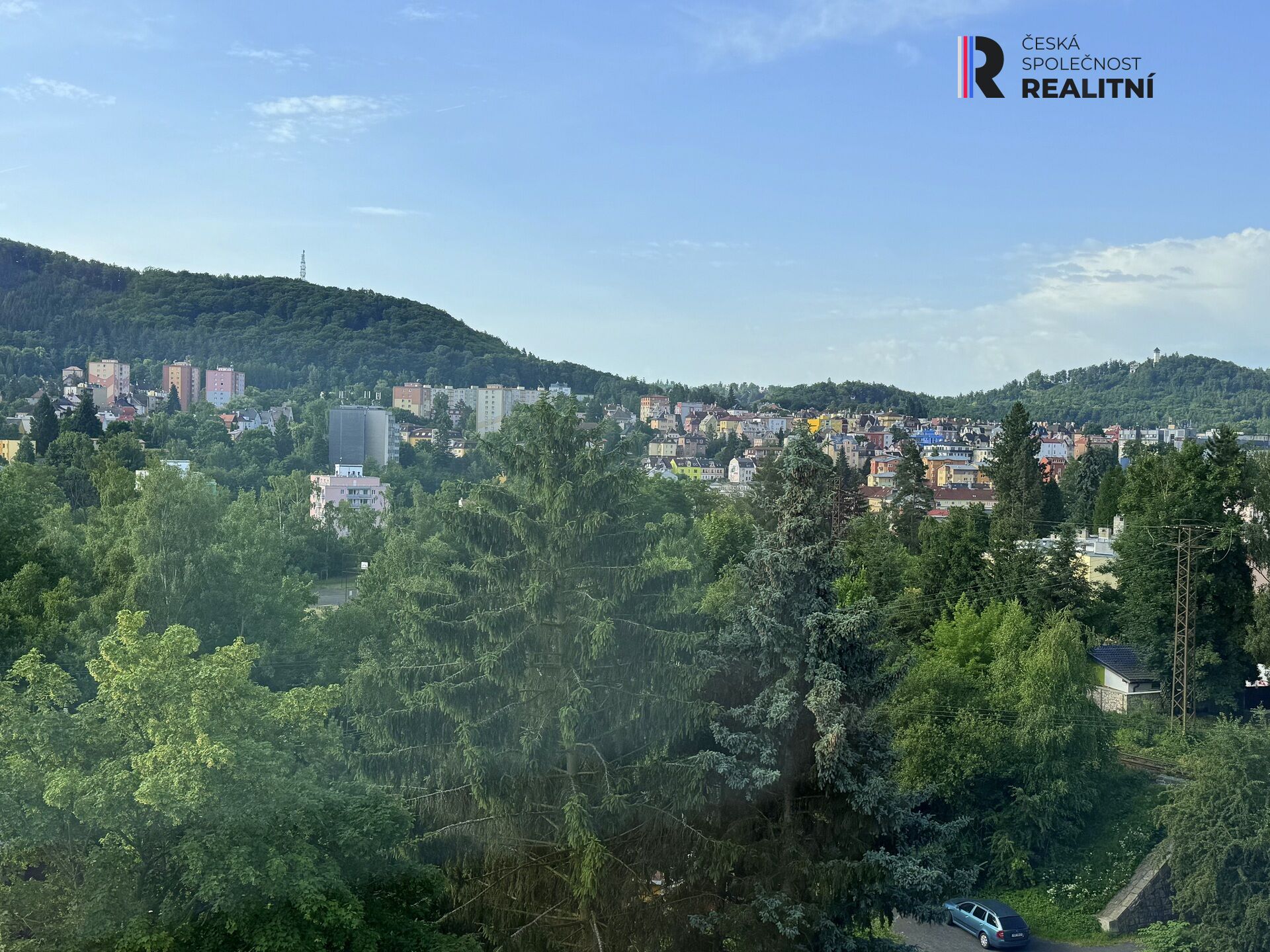Parkování je přímo u domu, teplo včetně teplé vody zajišťuje fotovoltaika Okolí tvoří zeleň s krásným výhledem n lázeňské město.