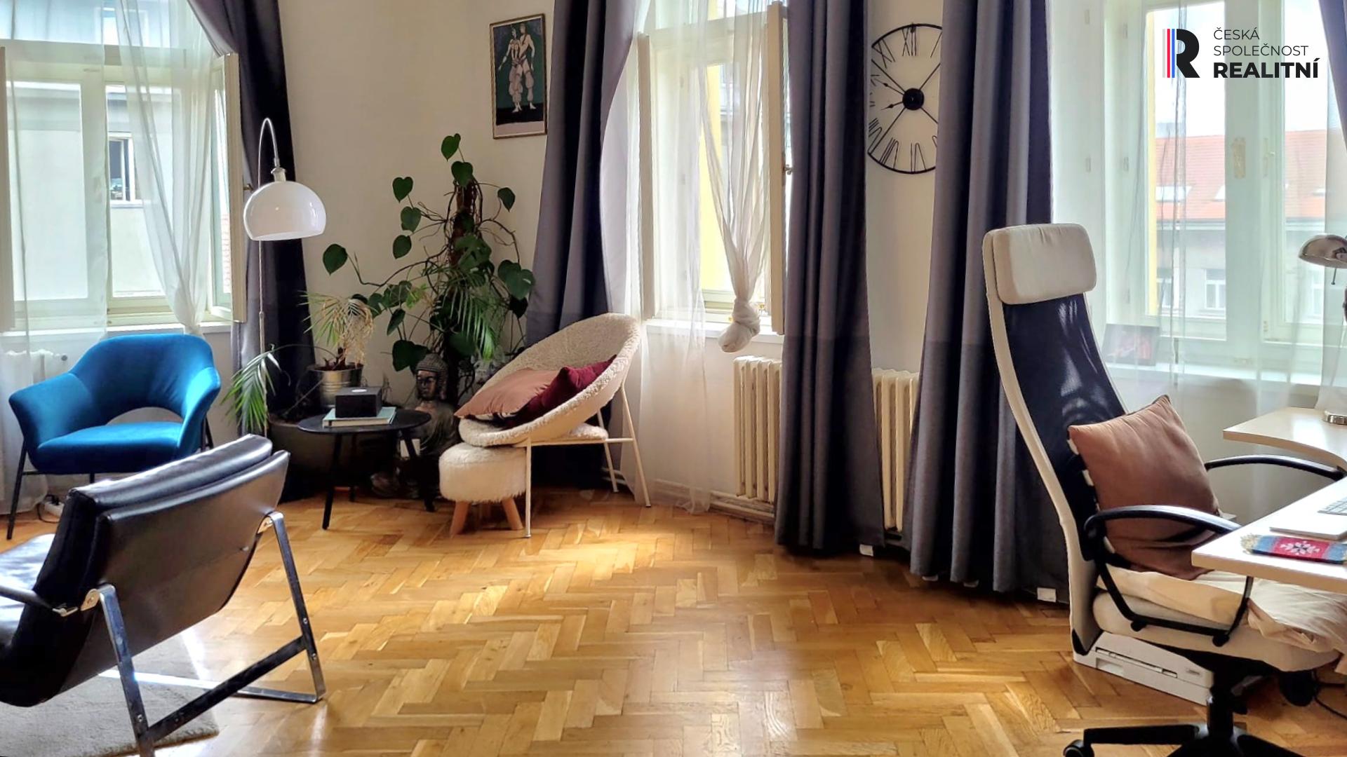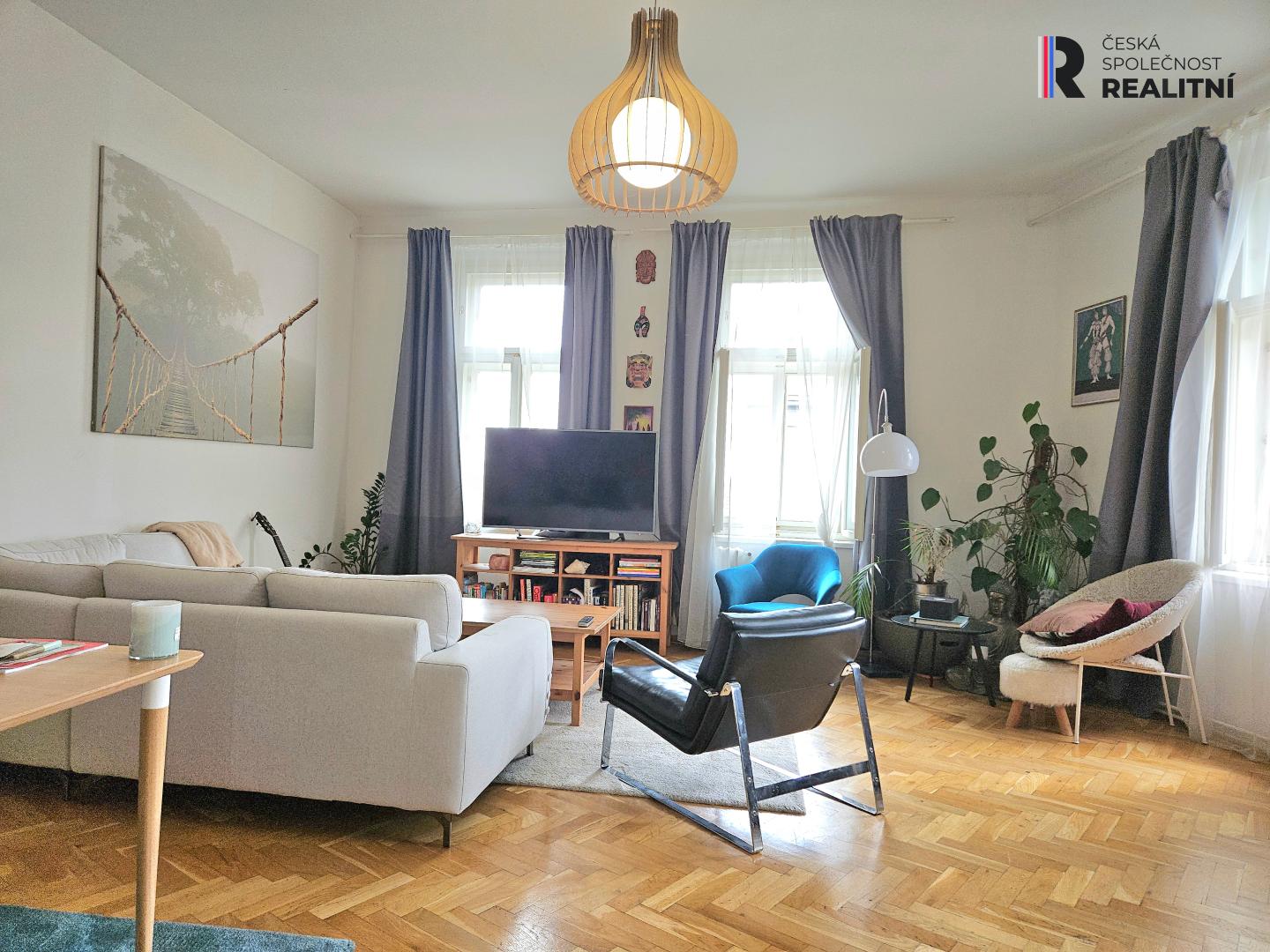 Nabízíme k pronájmu světlý a prostorný byt o velikosti 106 m² v pátém patře historického domu bez výtahu, přímo u metra I.P. Pavlova.