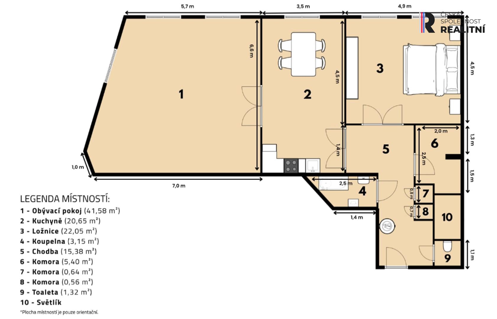 Podlahy tvoří vinyl (kuchyň, chodba) a parkety (obývací pokoj, ložnice). Praktická je také samostatná šatna a další dvě komory na chodbě. Z bytu je jedinečný výhled na kostel sv. Ludmily na Náměstí Míru, Tylovo náměstí i I.P. Pavlova – každý večer si můžete užít západ slunce za věžemi kostela.