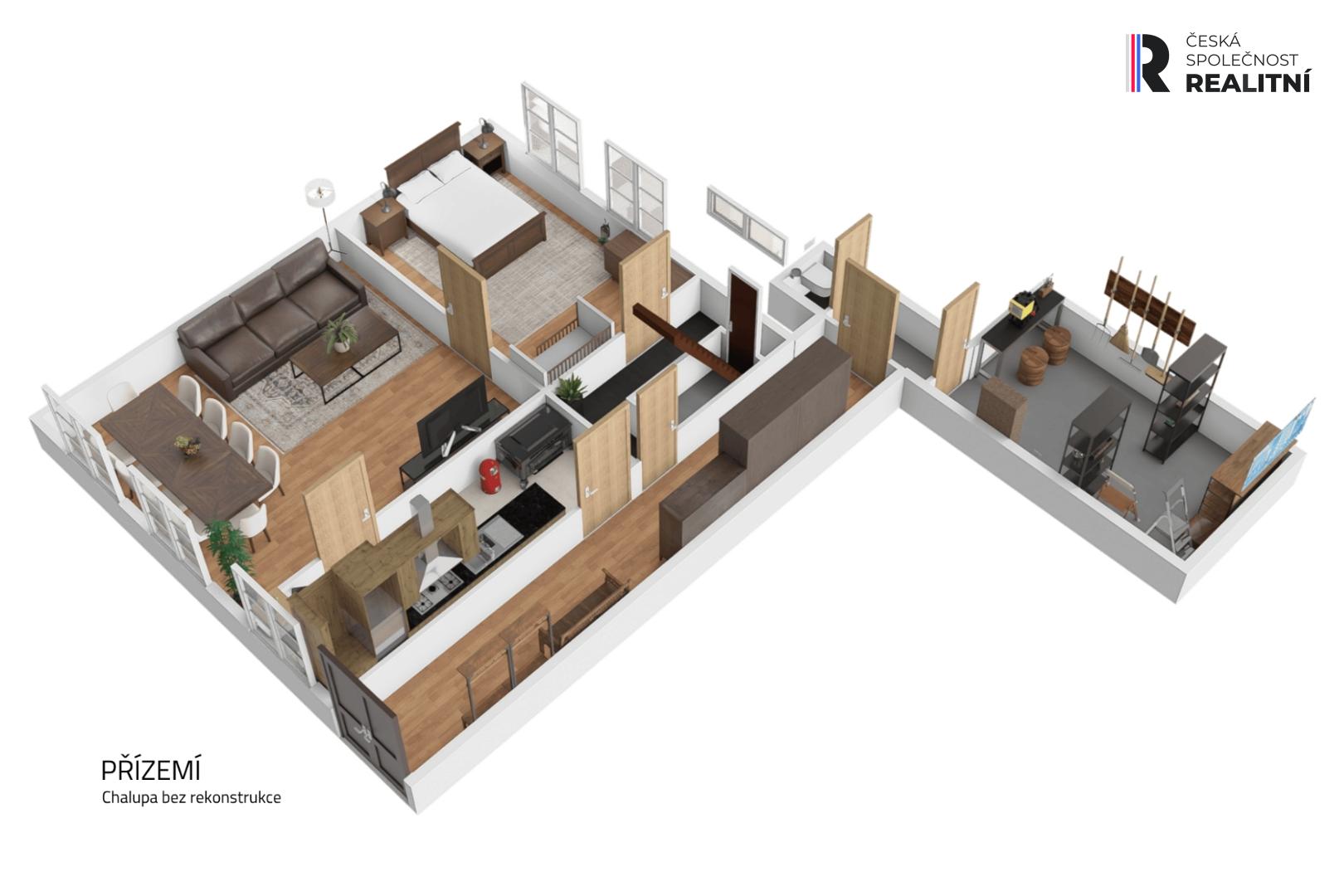 Druhý dům 161m2, čeká na svou novou kapitolu. Je před rekonstrukcí, ale s pevným základem a obrovským potenciálem - ať už pro další rodinu, hosty nebo jako inspirativní ateliér či penzion.