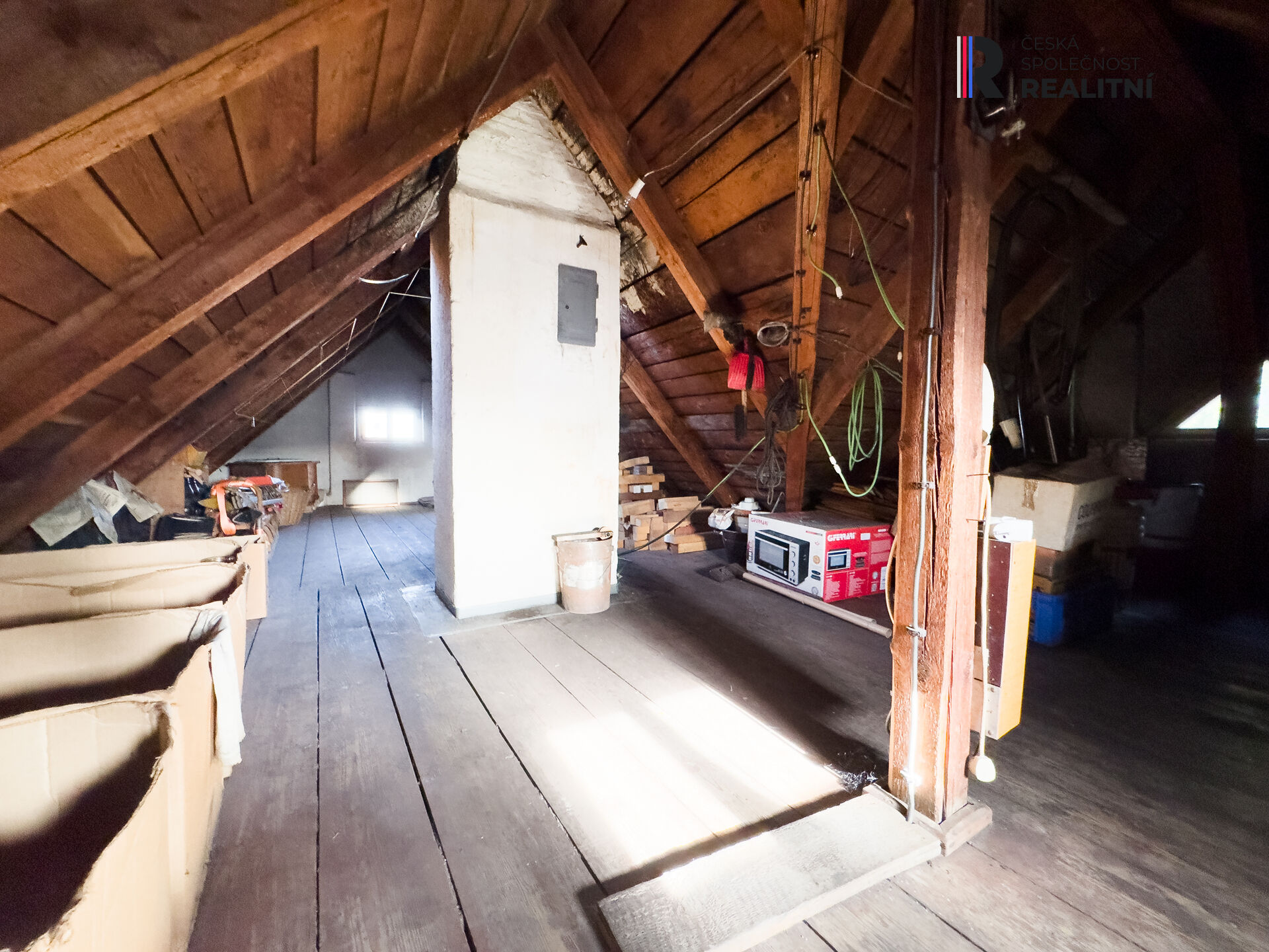 Podkroví slouží jako praktický prostor pro uskladnění sezónních a menších věcí.