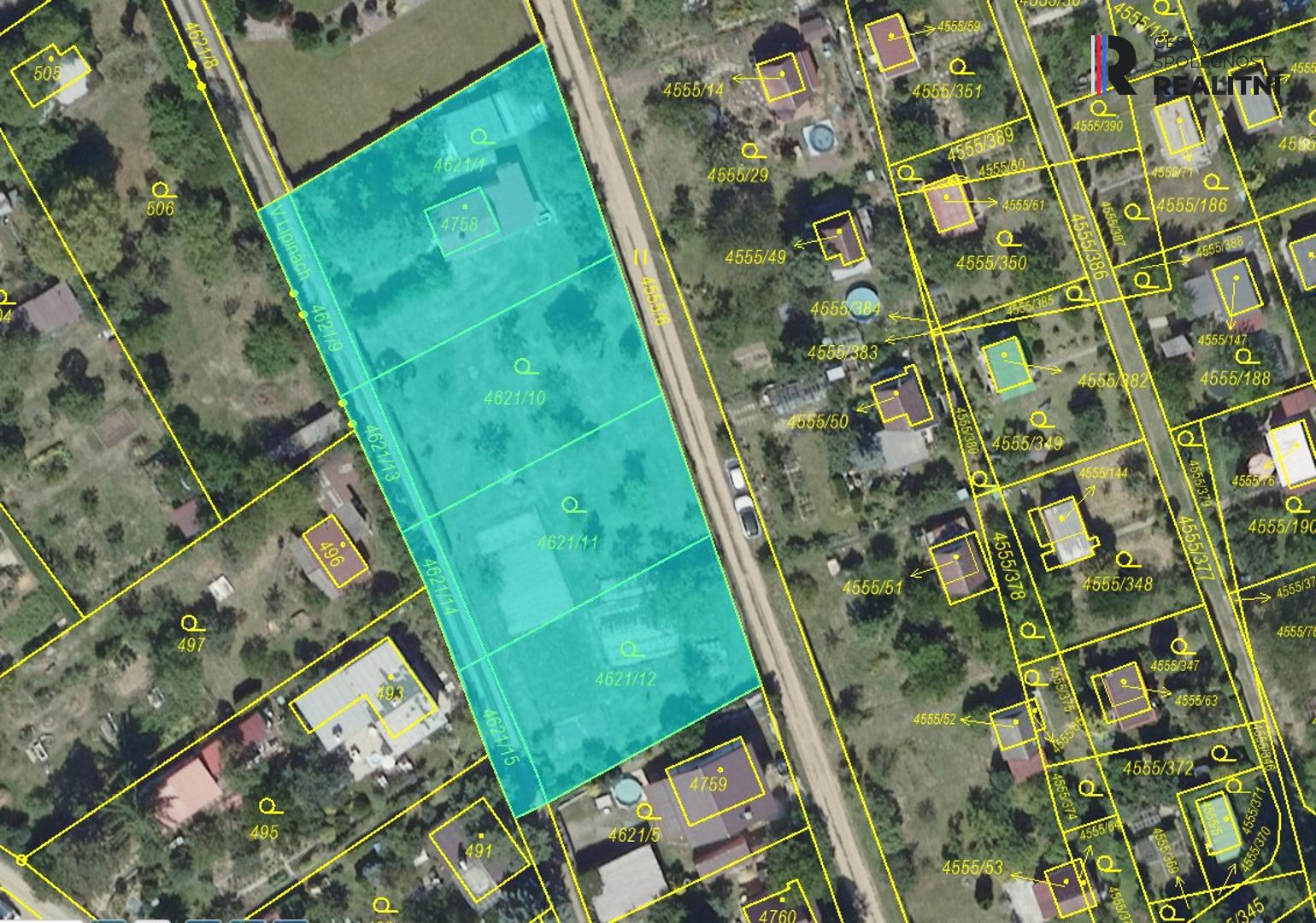 Unikátní nabídka – Praha–Cholupice, 4 stavební parcely pro rekreační stavby – chata 80 m² a tři dvoupodlažní chaty 25 m²