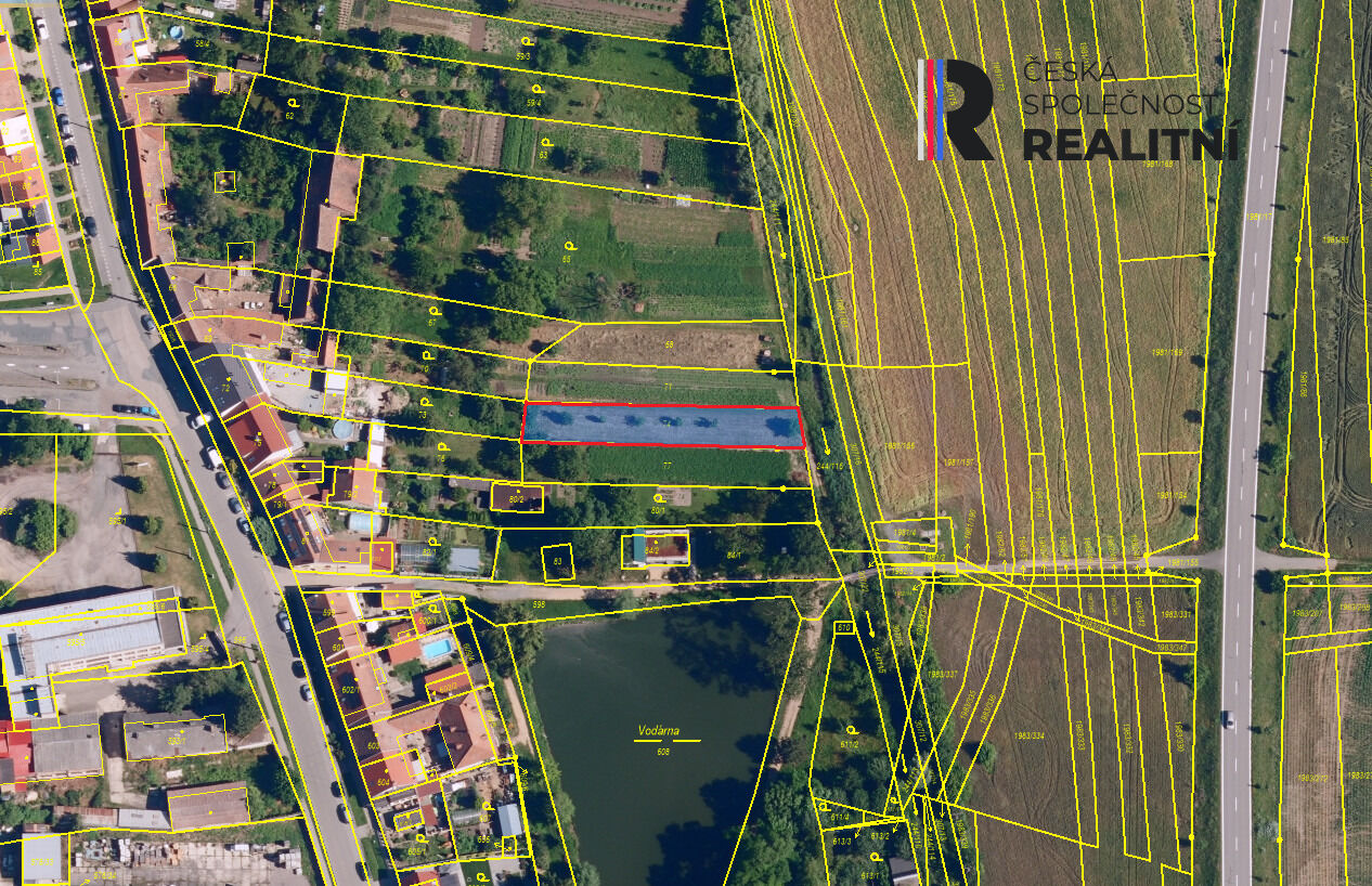 Výměra je 589m2 ( rozměr cca 9m šíře x 65m délky). Pozemek se nachází u polní cesty ( přístupová cesta ) nedaleko obecního rybníku - vodárny.