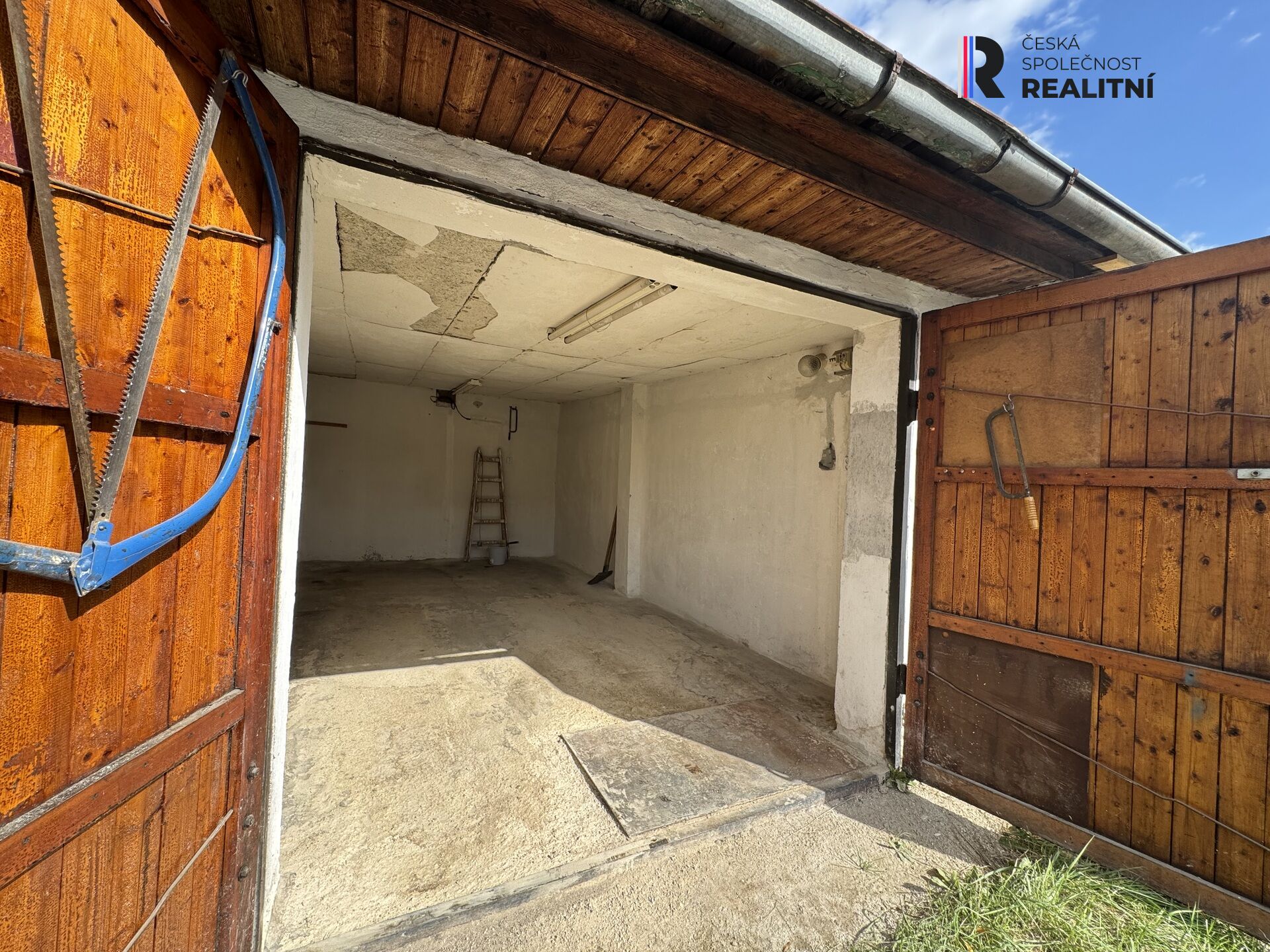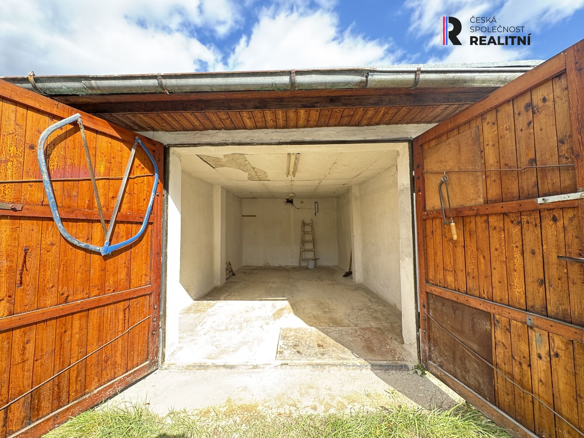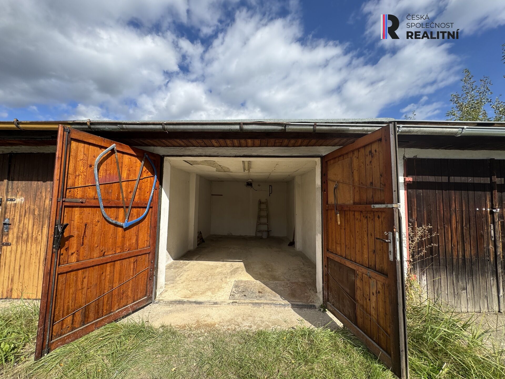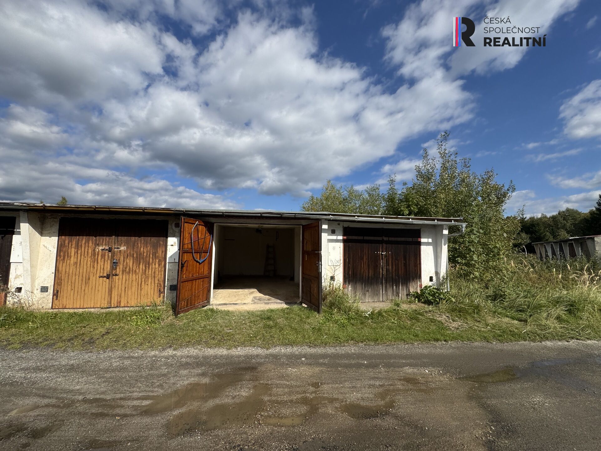 Cihlová garáž s výměrou 23 metrů čtverečních se nachází v řadové zástavbě garážového komplexu v části města. Má dvoukřídlá dřevěná vrata a na celou střechu je položena nová lepenka.