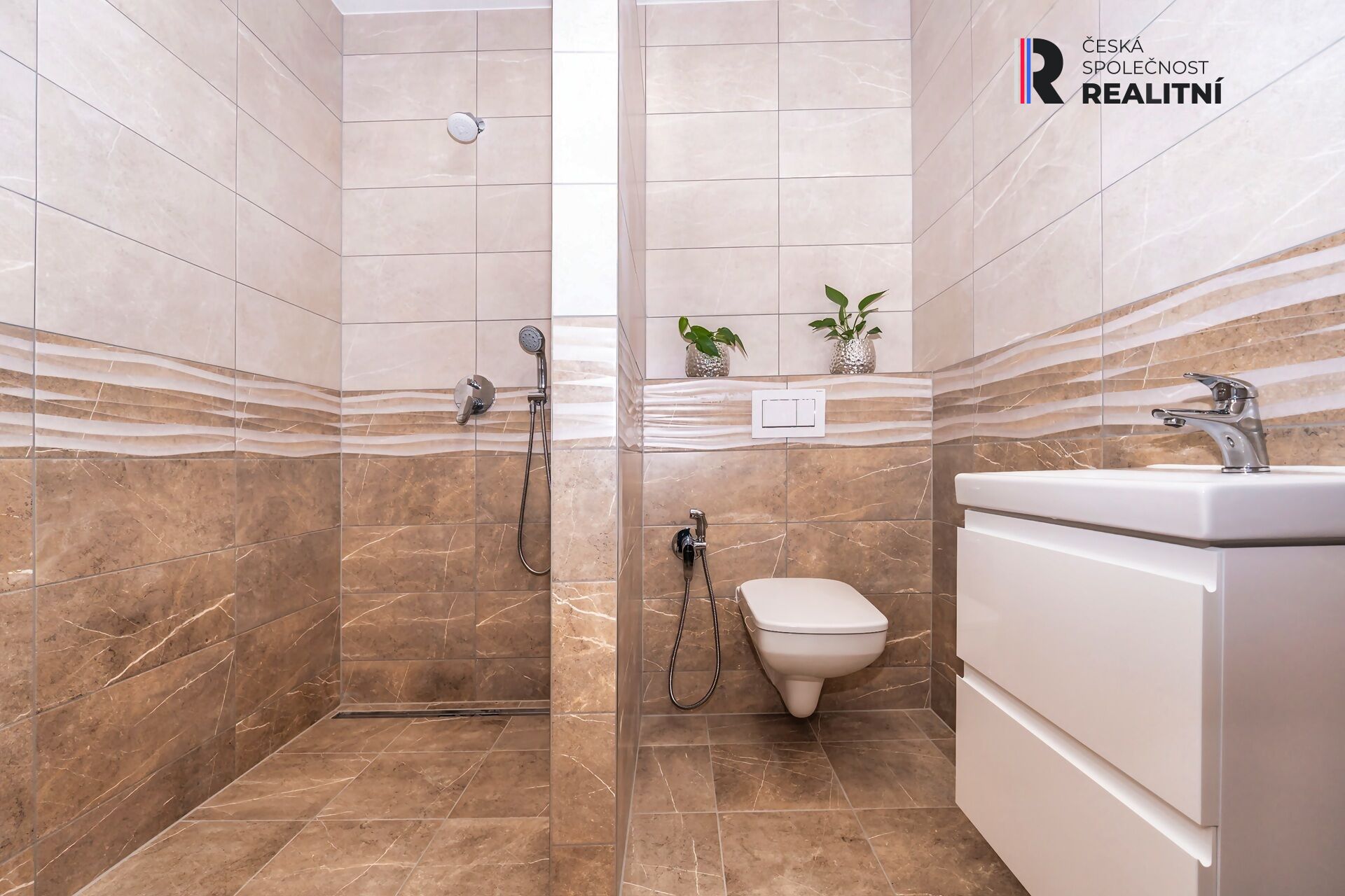 Na tomto podlaží se nachází také koupelna s WC (7,5 m²) a garáž (29 m²) s možností vstupu přímo ze zádveří, případně samostatnými garážovými vraty s dálkovým ovládáním.