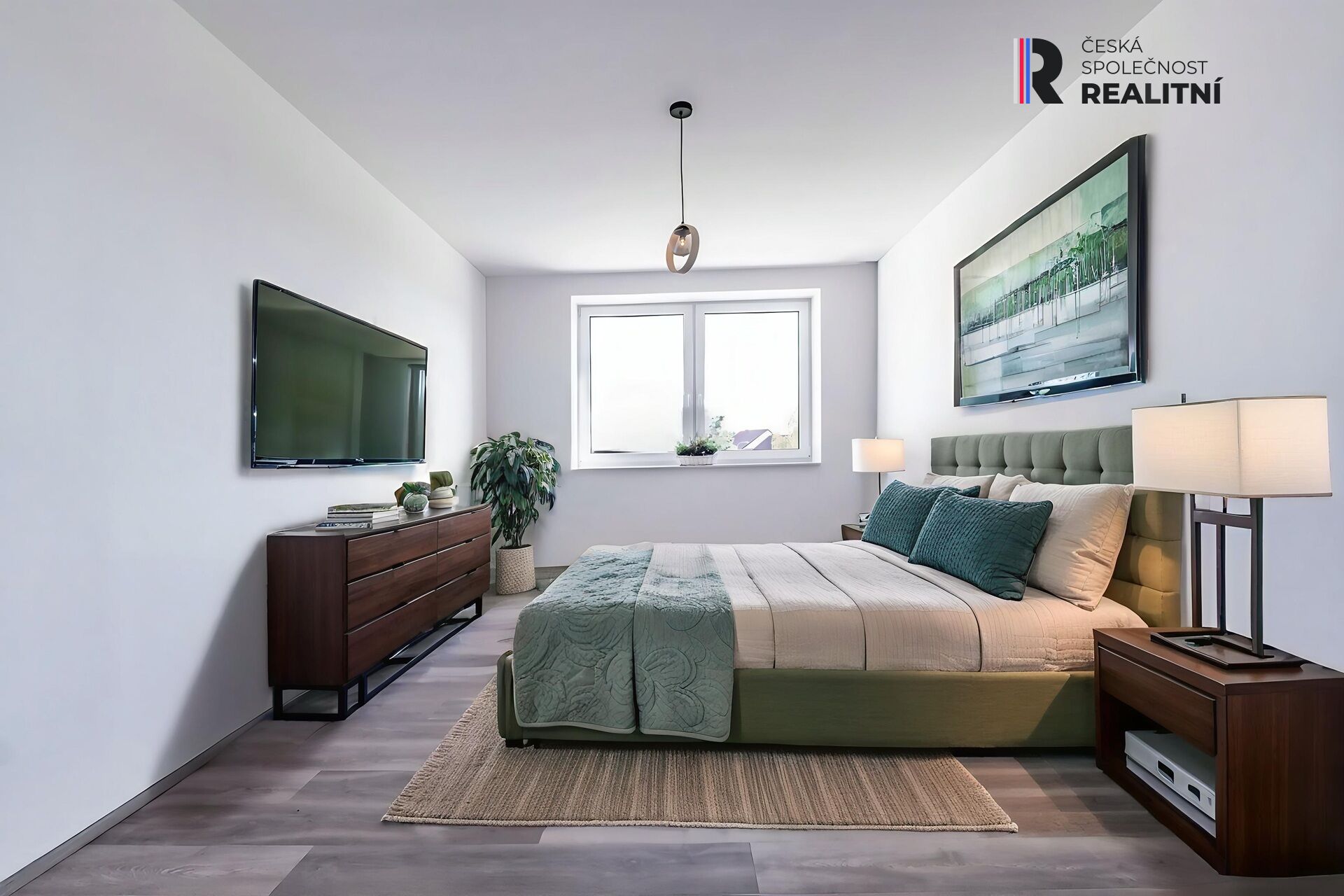 Další pokoj (14,5 m²) může sloužit jako ložnice, pracovna nebo klidné zázemí pro hosty.
