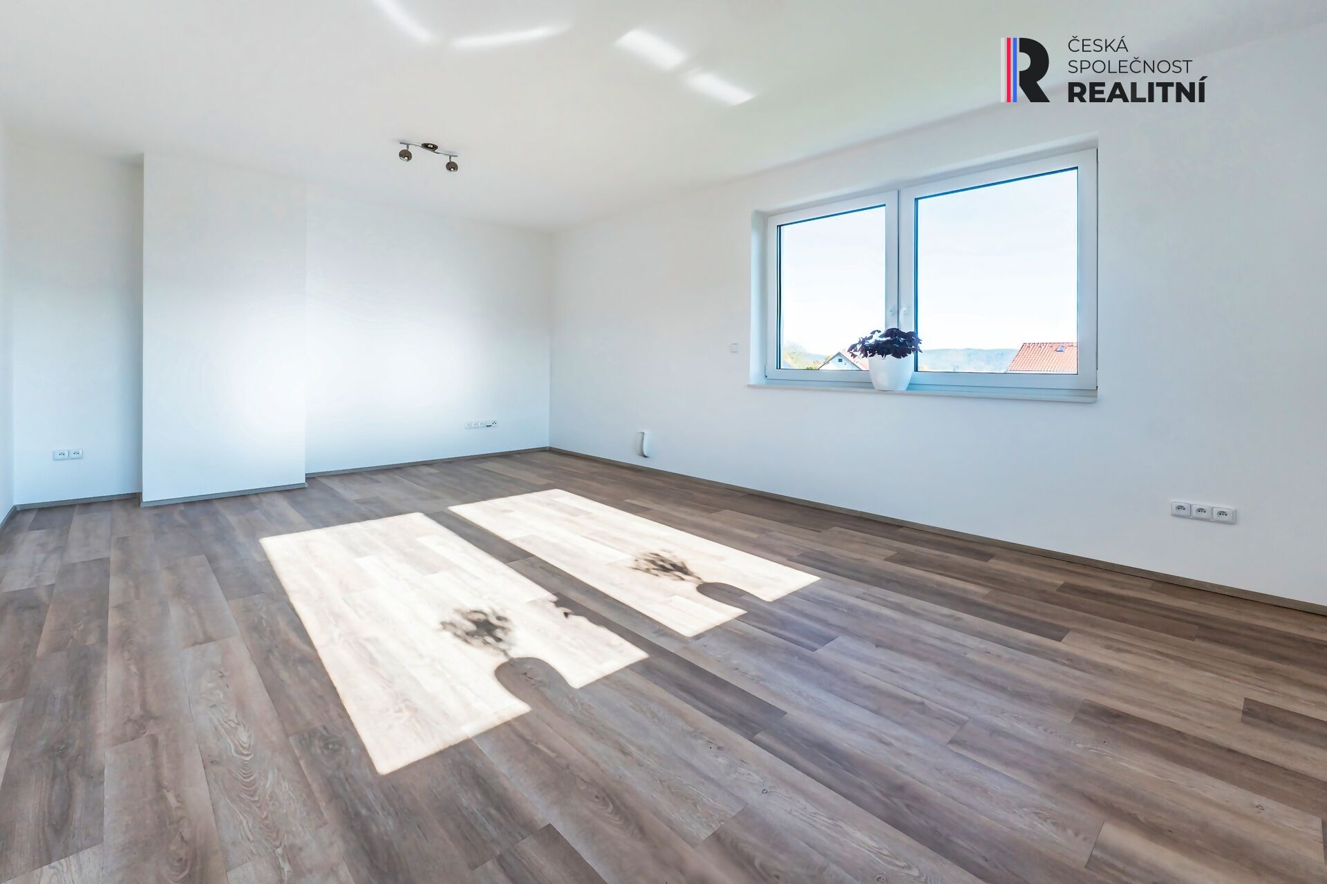Prostorný pokoj (24,9 m²) nabízí široké možnosti využití – kromě jiného jej lze eventuelně rozdělit na dva samostatné pokoje, případně z něj vytvořit další obývací prostor pro dvougenerační bydlení.