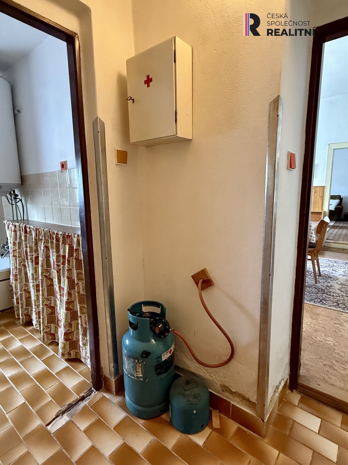 V kuchyni je k dispozici sporák na plynovou bombu, ohřev vody zajišťuje el.bojler, vytápění kamna v kuchyni a obýváku, případně jsou všude v místnostech elektrické přímotopy. Střecha je lehká střešní krytina Onduline.
